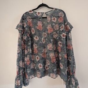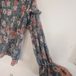 Melrose and Market Gray and Pink Ruffled Blouse