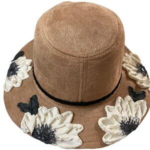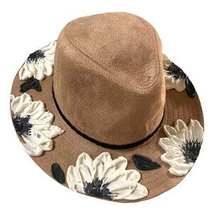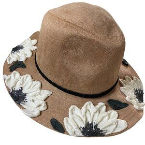 Melrose and Market Hand Painted Hat Tan with White & Black Flowers- One Size