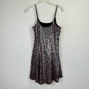Melrose and Market Mini Dress Size S Black Rainbow Sequin Sleeveless Party Glam