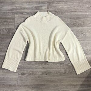 Melrose and Market Mock Neck Wide Sleeve Crop Pullover Sweater Size Large. Fisherman sweater