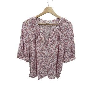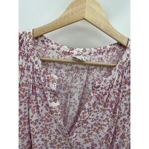 Melrose and Market Purple White Floral 3/4 Sleeve V-Neck Top Blouse Shirt Small