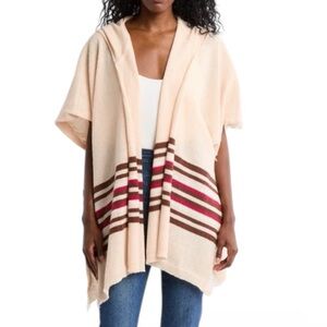 Melrose and Market Stripe Hooded Ruana, Ivory Combo, One Size, NWT