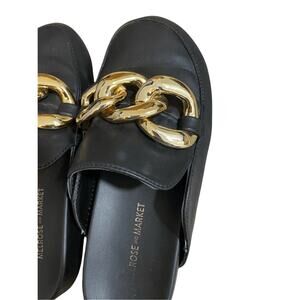 Melrose and Market Sz 5 Chain Mules Black Flats Business Casual, Office Preppy