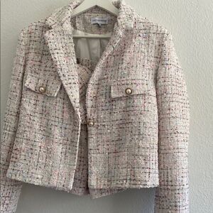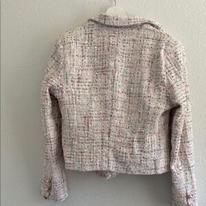 Details: Textured, stretchy, pearl button detail, zipper closure
