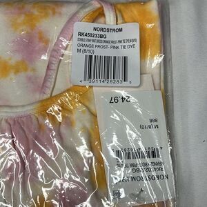 Get your NWT Orange Frost-Pink Tie Dye Double Strap Tropical Print Dress in Size Medium by Melrose and Market now!