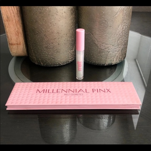 ❤️Bundle include the Millennial Pinx palette (only used once and swatched) and Melt Cosmetics Millennial Pinx lipgloss in shade “Sucker” (swatched)