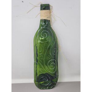 This elegant melted wine bottle cheese plate is an exceptional piece for entertaining. The bottle features intricate swirl designs, and the raffia wrap adds a rustic touch.