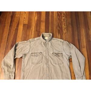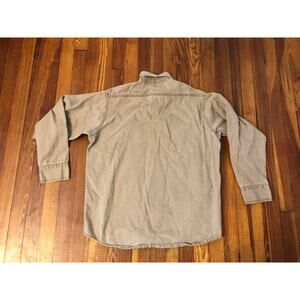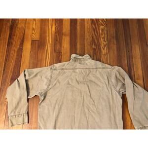 Melton VTG Mens Tan Button Shirt, the shirt does not have a size tag but sizes like a medium, the shirt is pit to pit 23.5 inches , sleeve length is 23 inches, and the length is 27.5 inches