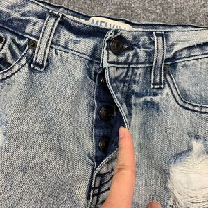 MELVILLE DENIM SHORT WOMEN 40 US 4 BUTTON FLY DISTRESSED CUT OFF ACID MADE ITALY