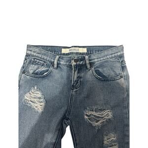 Step up your denim game with these trendy, distressed light wash jeans from Melville. With their relaxed yet flattering fit, these jeans are perfect for a casual, edgy look. The pre-loved condition adds to their unique character, making them a great find for anyone who loves distressed denim.