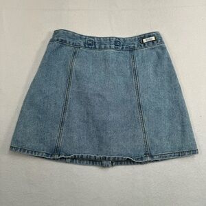 Melville Snap Button Down Mini Denim Jean Skirt Womens Sz 26 Light Wash Preppy