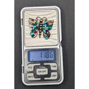Melvin Cleveland Navajo Stone Inlay Butterfly Sterling Silver Brooch Pin Pendant