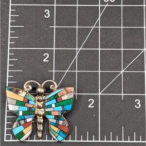 EXCEPTIONAL Melvin Cleveland Signed Navajo Native American Multi Stone Mosaic Inlay Butterfly Sterling Silver Brooch Pin Pendant. Wow! The metal may benefit from being polished but I will leave that decision to the buyer. Please use the pictures as your main source of reference, but feel free to message me with any questions at all. Thanks for looking!