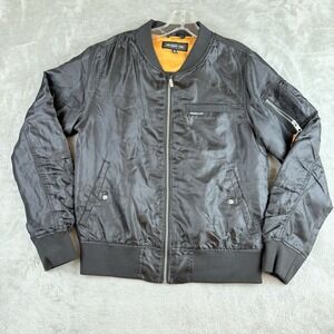 Members Bomber Jacket 18 Black Full Zip Long Sleeve Iconic Racer Moto 80s Retro