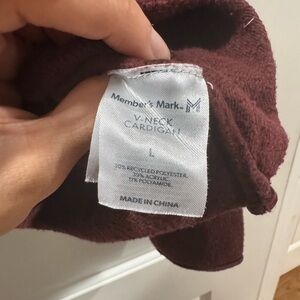 Members Mark Burgundy V-Neck Cardigan Sweater, L