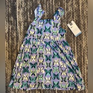 Charming dress by Cat & Jack featuring a lively butterfly pattern. Predominantly purple with accents of green and yellow.