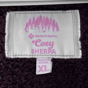 Members Mark Cozy Sherpa Pull Over Jacket Hoodie XL Plush Plum Quarter Zip-Up