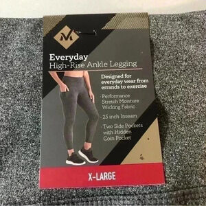 New with tags Members Mark High Rise Ankle Leggings Moisture Wicking Material Side Pockets and hidden coin pocket. 25 inch inseam.