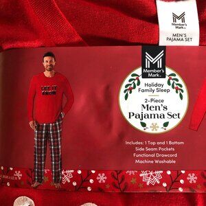 Members Mark Holiday 2-Piece Let it Snow Pajama Set Mens Size XL Red Plaid NEW