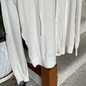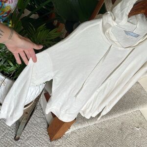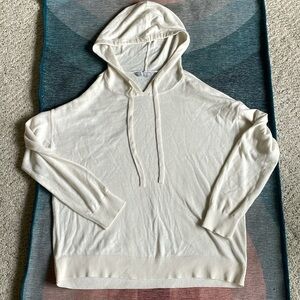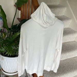 Stay cozy and stylish with this elegant white hoodie sweater. Perfect for layering, this sweater offers comfort and versatility for any occasion. cashmere wool blend , size large amazing like new pre loved condition