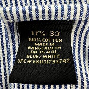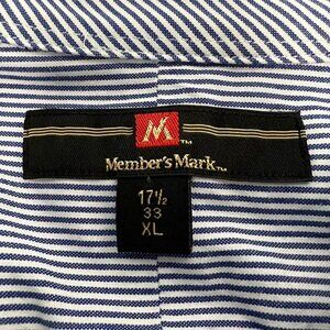 Members Mark Mens Button Down Shirt Blue White Striped Long Sleeve Pocket 17.5