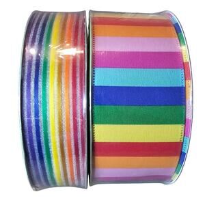 -1 ribbon that is multicolored in rainbow colors and 2.5" x 50yrds