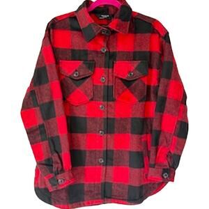 Member's Mark Red/Black Buffalo Check Button-Front Shacket Women's Small NWT
