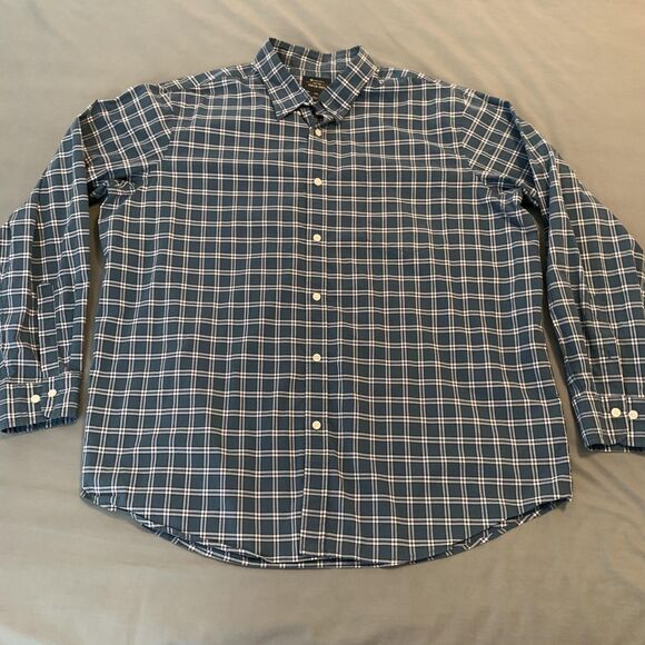 Members Mark Shirt Mens 2XL Blue Plaid Cotton Poplin Button Down Long Sleeve