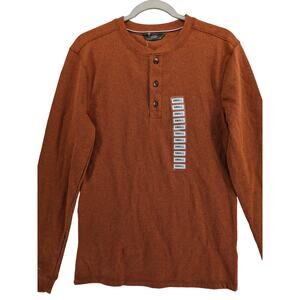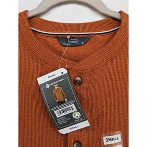 Members Mark Thermal Henley Tee S Orange Long Sleeve Tshirt Waffle Knit Layering