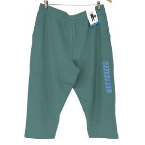 Members Mark Womens French Terry Drawcord Waistband Aqua Slate Capri Pants Large