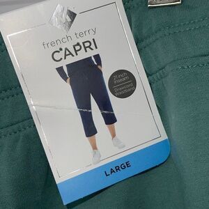 Member's Mark Women's French Terry Drawcord Waistband Capri Pants Aqua Slate Large NWT