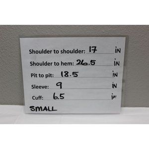 See measurements in images / listing and compare them to your best fitting garment to get sizing.