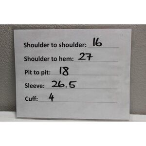 See measurements in images / listing and compare them to your best fitting garment to get sizing.