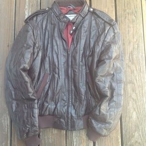 Members Only Brown Leather Bomber Jacket Sz 44 L Coat Zip Front Vintage 80s 90s