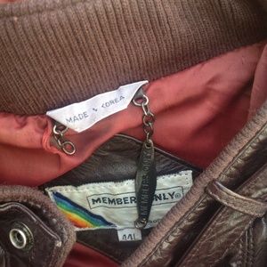 Members Only Brown Leather Bomber Jacket Size 44 L Coat Zip Front Vintage 80s 90s Mens