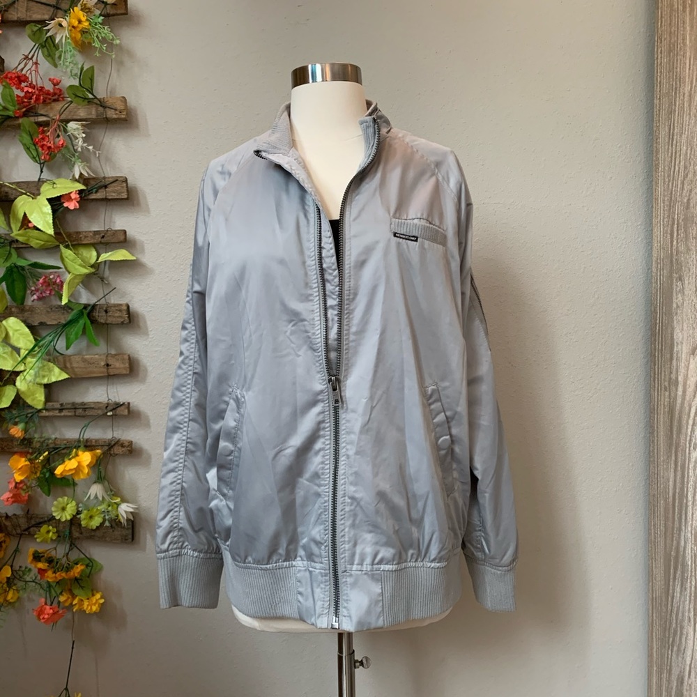 Classic Iconic Racer jacket by Member’s Only gives a lightweight finish to your casual look. Double snap iconic throat latch, signature shoulder epaulettes and trademark front logo pocket. Zip closure and two waist pockets. Shell: polyester; lining: polyester. Machine washable. Gently worn.