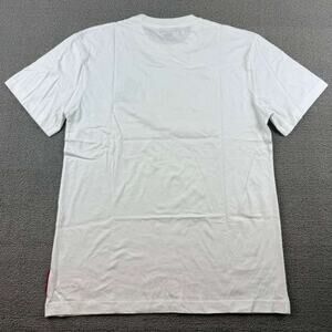 Clean white short sleeve tee with small embroidered bear graphic and woven side tag; classic crew neck, straight hem. Soft 100% cotton—easy everyday streetwear layer.