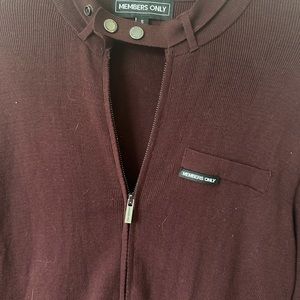NWOT Members Only Burgundy Iconic Racer jacket in a sweater material! Zip closure and iconic Members Only throat latch and logo on the pocket.