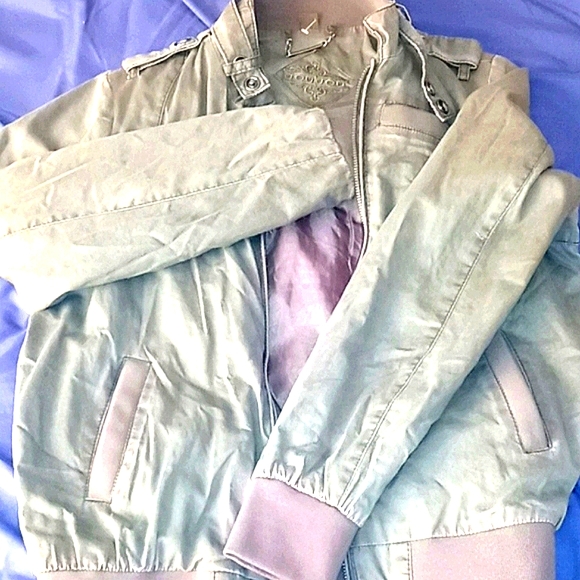 Camouflage solid green members only jacket has 4 pockets and inside lining. Very comfortable
