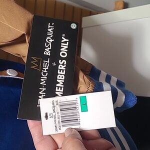 Members Only, Jean Michel Basquiat artist design, lightweight jacket, Size Large. Button front, inside mesh pocket. Brand new with tags.