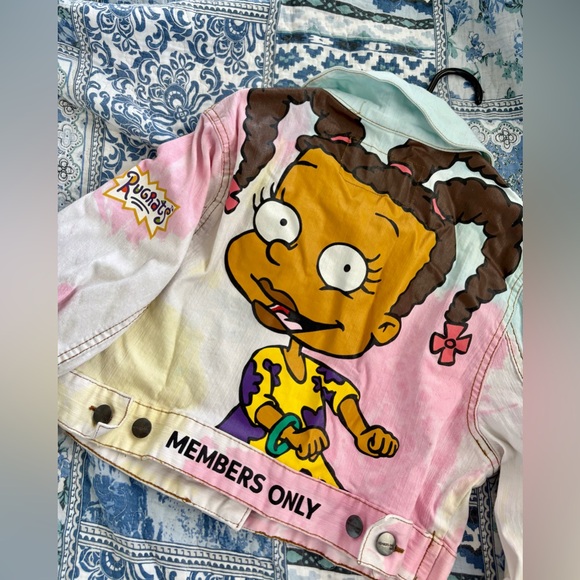 This vibrant Members Only jacket features a playful Rugrats design, perfect for adding a pop of color to your child's wardrobe. The multicolor pattern includes shades of pink, yellow, and blue, making it a fun and stylish choice for any young fan.