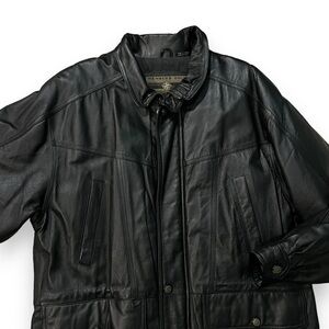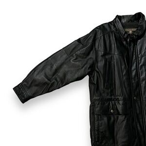Members Only Leather Coat Long Black Mens Medium Vintage 90s