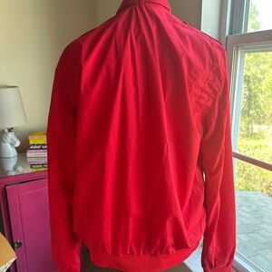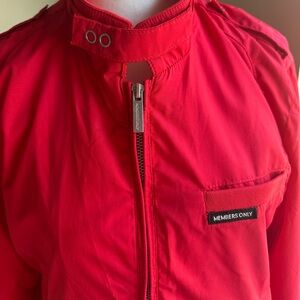 Members Only Iconic Racer Jacket in red. Size small unisex! Features signature front pocket, epaulettes, and throat latch.