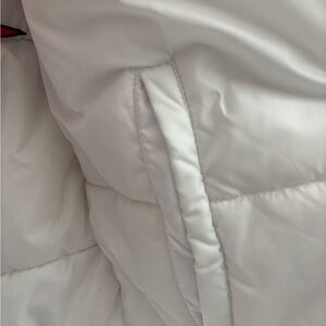 Bold cartoon print on a black puffer jacket. Bright multicolor character graphics for a playful look. Front zip closure and high collar. Lightweight insulated design for everyday wear. Inside pockets as well. Very good condition. Clean. Machine washable. Size L. This jacket could actually be unisex. Very cute! Non-smoking and pet free environment.