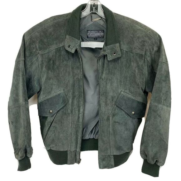 Members Only Green Suede Leather Full Zip Flight Bomber YKK Zip VTG Jacket Adult Size 40 Please look at pictures carefully and see measurements and condition as this item is pre-owned. Sizes between brands and fabrics fit differently. Color shade may vary on different type of monitors and lighting.