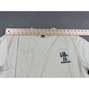 Cream short sleeve tee with a small embroidered knife bear graphic at left chest and Members Only text. Soft cotton knit with classic crew neck and straight hem—clean streetwear basic with a playful edge.