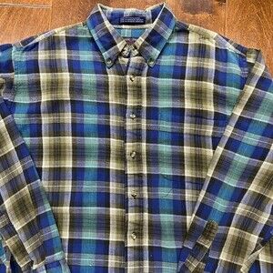 Member's Only Vintage 80s Plaid Flannel Blue Grey Button Down Shirt Men's Large