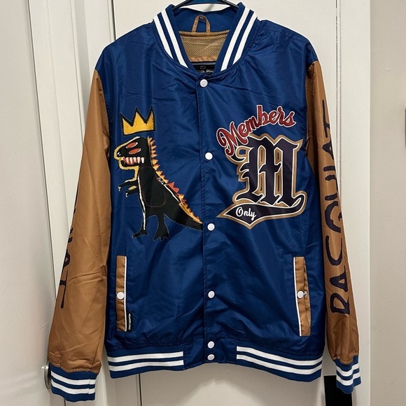 Members Only X Jean Michel Basquiat Varsity Bomber Jacket M Mona Lisa blue