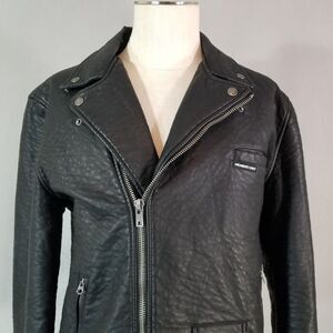 Members Only jacket mens 2XL XXL balcke faux leather Biker NEW FLAWED AS IS