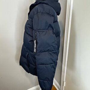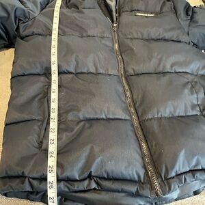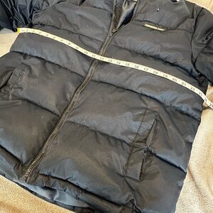 Members Only puffer jacket navy blue men’s Medium. Pockets. Warm. Soft Shell. A few small holes near the collar. Noted in photos. Otherwise great condition. Please see pictures for measurements.